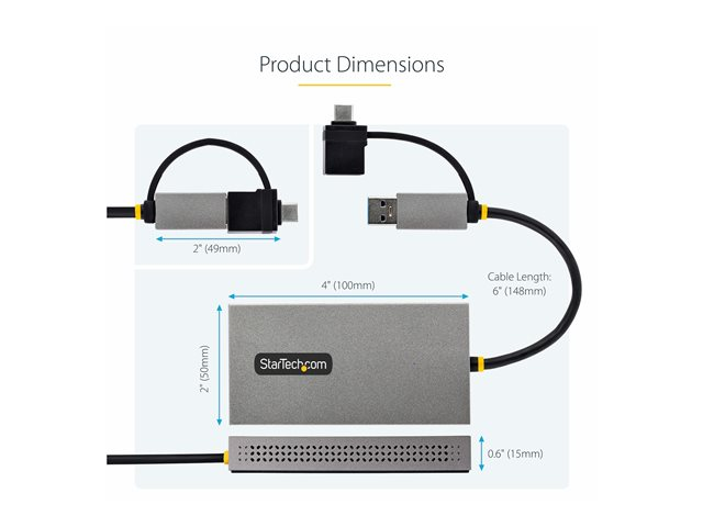 107B-USB-HDMI - StarTech.com USB to Dual HDMI Adapter, USB A/C to 2x HDMI Monitors (1x 4K 30Hz, 1x 1080p), Integrated USB-A to C Dongle, 4in/11cm Cable, Windows & macOS
