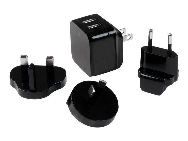 kraftfull (17 W/3,4 A) - reseladdare (internationell) - Strömadapter - 17 Watt - 3.4 A - 2 utdatakontakter (USB) - svart - för P/N: USBLT1MWS, USBLT2MBR, USBLT2MW, USBLT30CMW, USBLTM1MBK, USBLTM1MWH, VID2VGATV3