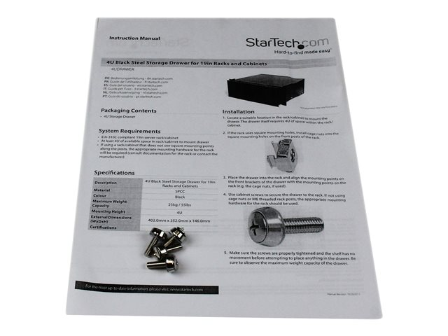 4UDRAWER - StarTech.com 4U Black Steel Storage Drawer for 19in Racks and Cabinets