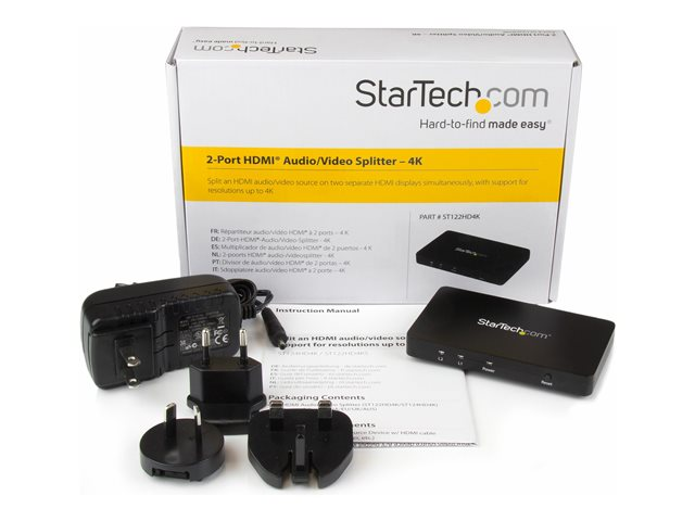 ST122HD4K - StarTech.com 4K HDMI-video-splitter med 2 portar – 1x2 HDMI-splitter med hölje i solitt aluminium – 4K @ 30 Hz