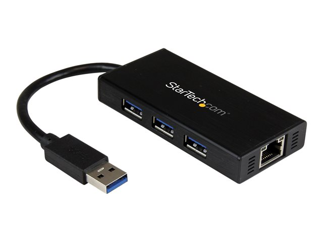 ST3300GU3B - StarTech.com Bärbar USB 3.0-hubb med 3 portar plus Gigabit Ethernet
