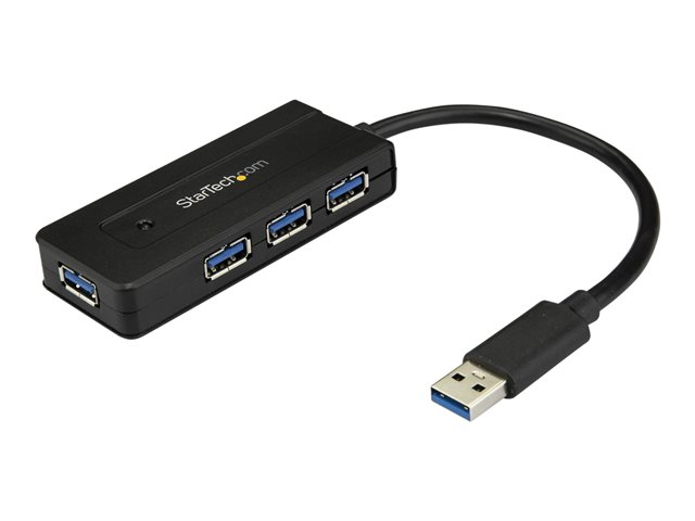 Denna 4-ports USB 3.0-hubb förvandlar en enda USB-port på din bärbara dator till fyra USB-A-portar och har en kompakt USB-driven design som gör den perfekt för resor. För enheter som kräver extra ström kommer hubben med en extern nätadapter.  Lägg till USB-portar i stort sett var du än är Med sin kompakta och lätta design är USB-hubben med 4 portar skräddarsydd för mobilitet. Du får enkelt plats med den i datorväskan när du reser, vilket gör det enklare att få fler anslutningsmöjligheter nästan var du än behöver det. Den är perfekt för att ansluta vanliga USB-enheter som till exempel en mus, ett tangentbord eller ett USB-minne just när du behöver dem. Du kan installera den mångsidiga USB 3.0-hubben i stort sett var som helst eftersom den tar upp minimalt med plats på skrivbordet och så passar den perfekt för hot desking eller i BYOD-miljöer. Mer ström när du behöver den Denna självdrivna USB-hubb har en extern strömadapter för strömslukande USB-enheter, som till exempel större externa hårddiskar och kabinett, som kräver mer ström än vad USB-ström kan ge på egen hand. Med nätadaptern kan du också ladda din smartphone på en av de tillgängliga portarna. Varje USB-A-port stöder USB Battery Charging Specification 1.2. Endast en enhet åt gången bör laddas. Universalt stöd för enkel installation Denna USB 3.0-hubb fungerar med en mängd olika datorer då det inte behövs någon extra programvara eller drivrutin. Den installeras automatiskt när du ansluter den till din bärbara eller stationära dator så att du kan komma igång snabbt. Den fungerar även med olika operativsystem som till exempel Windows , macOS, Linux och Chrome OS så den är kompatibel med flera plattformar. ST4300MINI täcks av StarTech.coms 2-årsgaranti och gratis livstidsgaranti på teknisk support.