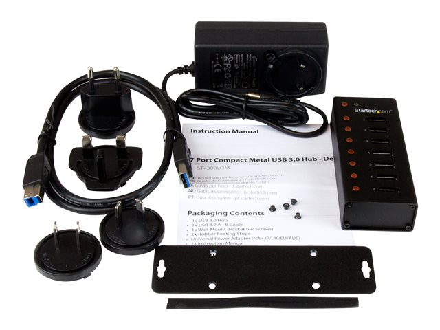 ST7300U3M - StarTech.com USB 3.0-hubb med 7 portar – skrivbords- eller väggmonterbart metallkabinett